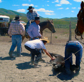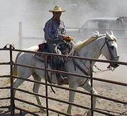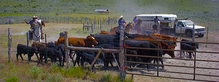 The severe drought of the 1930's virtually destroyed sheep raising as an industry and brought a mixed farming and cattle economy. Because of the dry conditions of this high desert (5400'), this type of ranching allows cattle to range over large territories and are gathered, branded, sold and driven by men on horseback from low to high altitudes ranges as the seasons demand. Because of changing federal regulations governing public lands which have traditionally been grazed by ranchers, and changing systems of animal husbandry this way of life seems to be coming to an end in the American West.